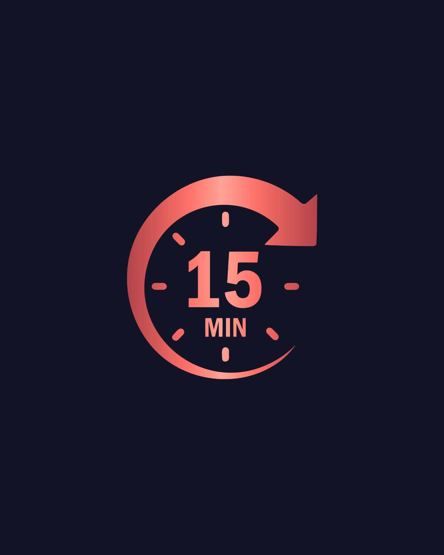 Each session is precisely timed for 15 minutes to deliver the optimal therapeutic dose of PBM. This ensures efficient and effective treatment that aligns with proven clinical protocols, making daily self-care simple and results-oriented.