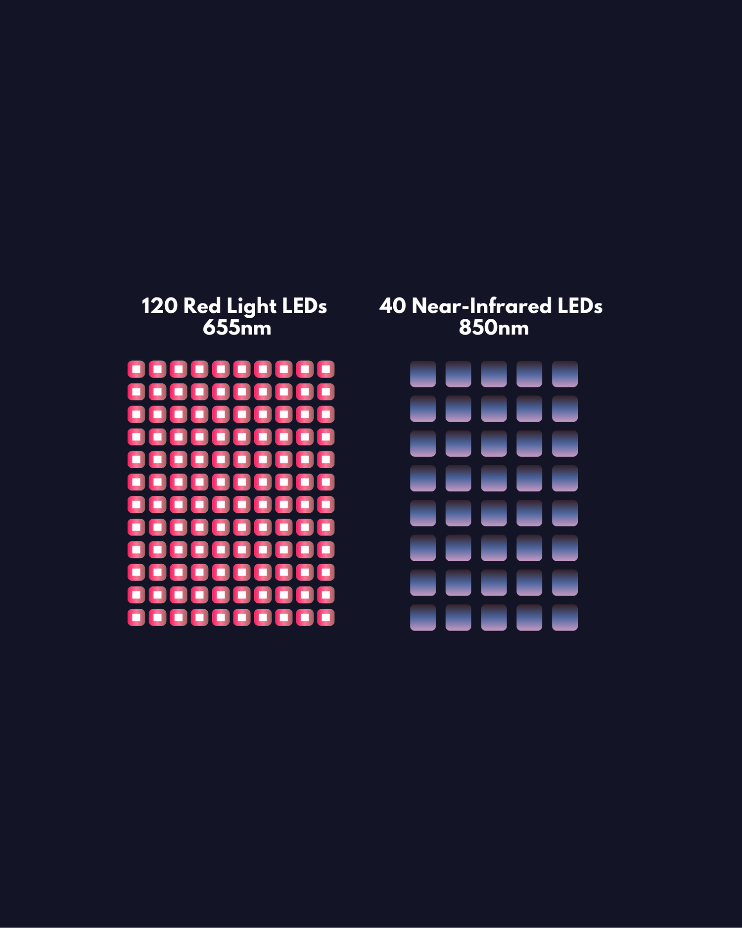 Combines 655nm Red Light (for superficial tissue) and 850nm Near-Infrared Light (for deep muscles and joints). This dual-action approach ensures comprehensive photobiomodulation (PBM) for superior tissue healing and inflammation reduction across all layers of the knee joint.